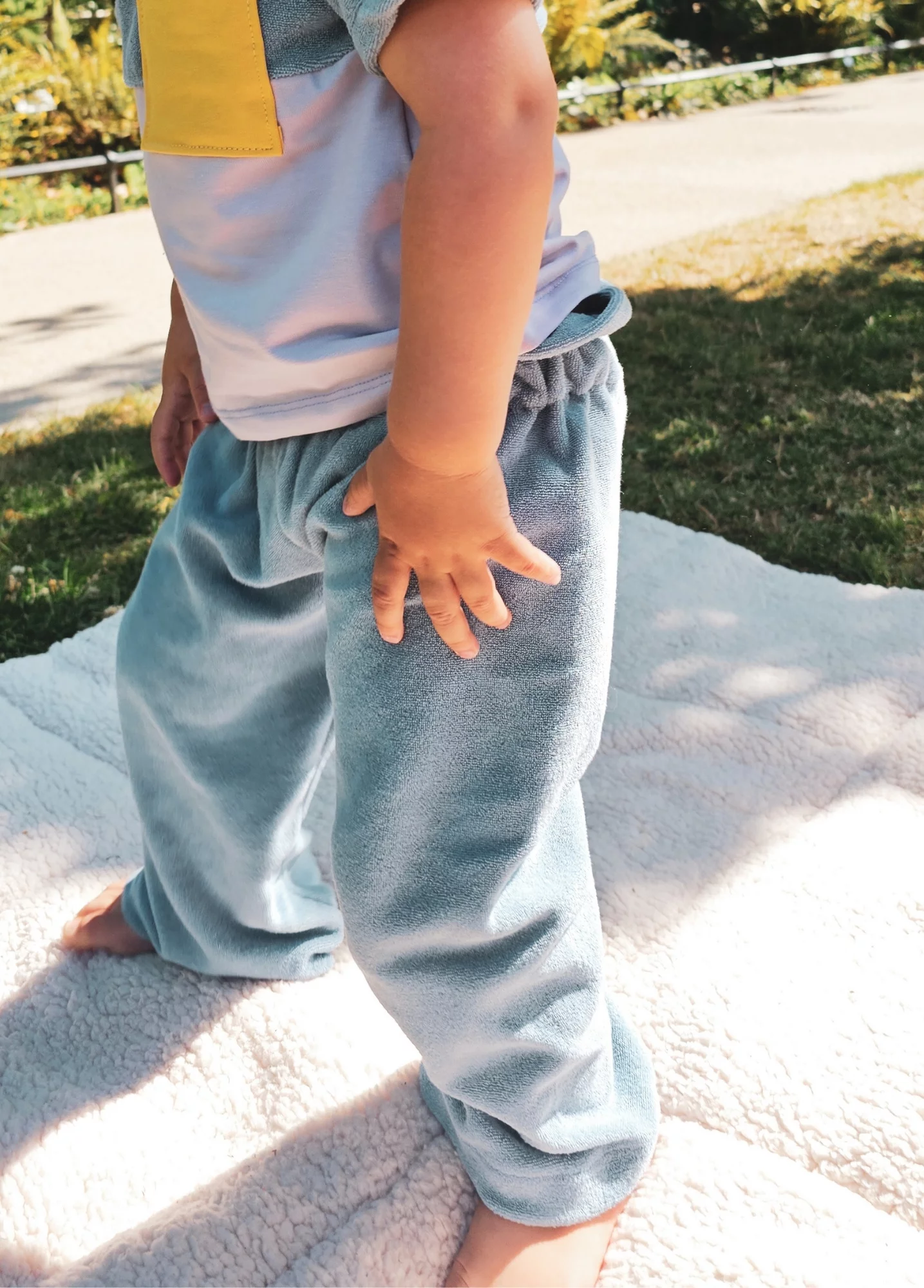 Pour se sentir comme dans un pyjama, optez pour notre pantalon en éponge bleu polaire.