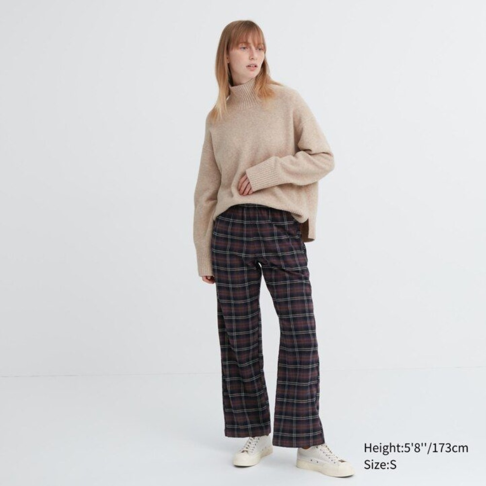 Pantalons Uniqlo Flannel Femme Marron Foncé I7208493