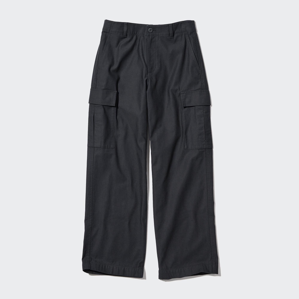 Pantalons Uniqlo Larges Droit Leg Cargo Long Femme Grise Foncé T4916508