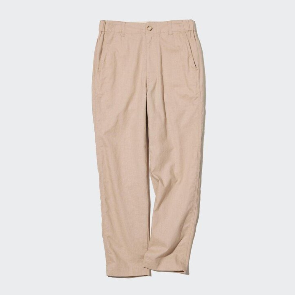 Pantalons Uniqlo Linen Coton Tapered Femme Marron Y0864975