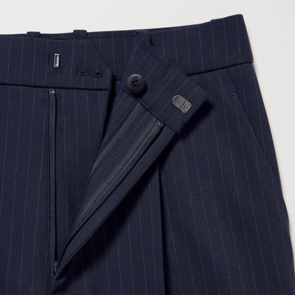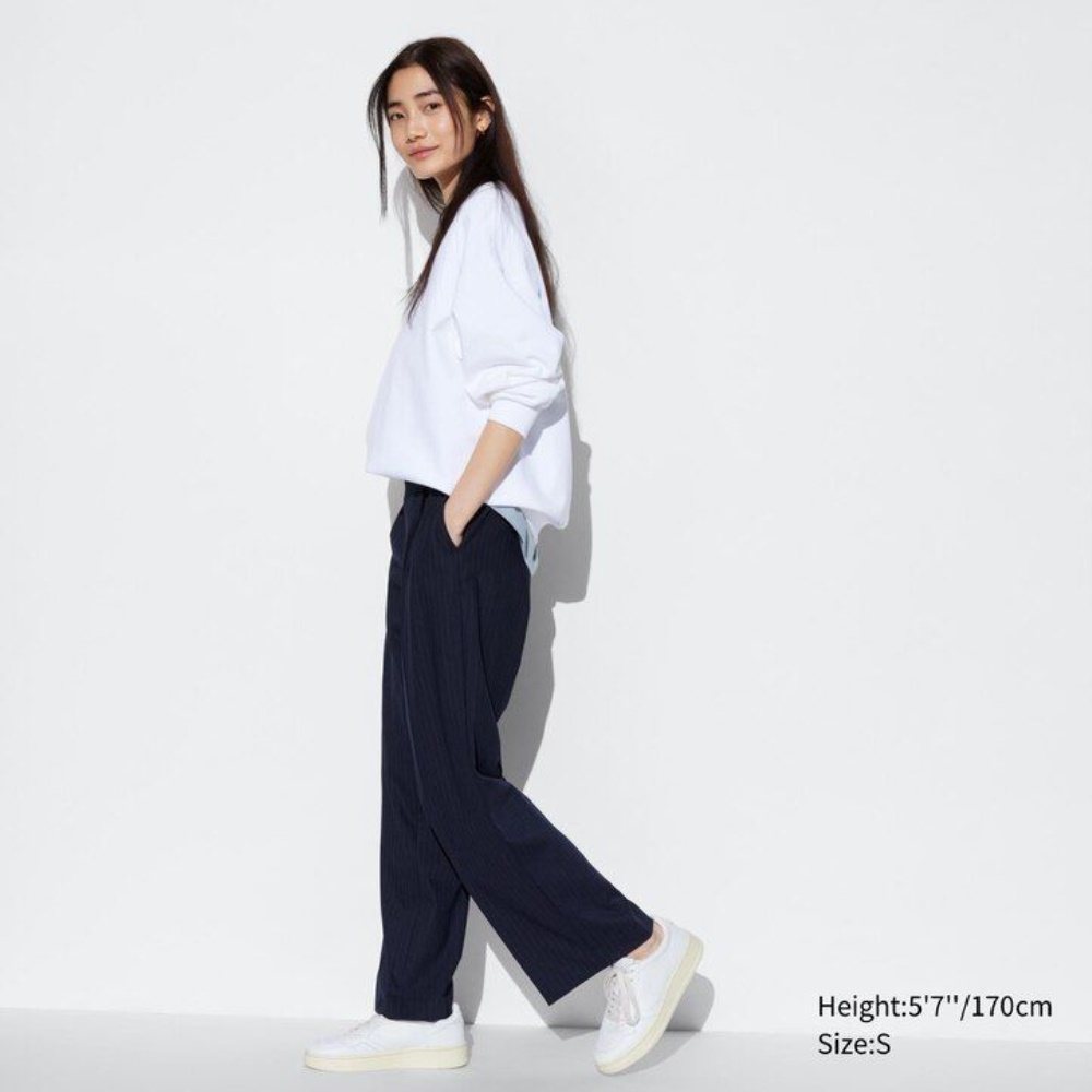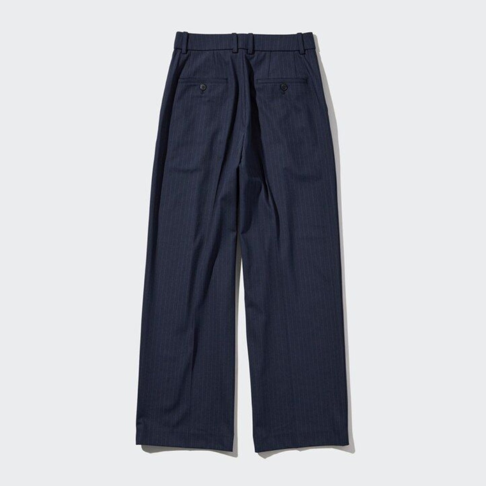 Pantalons Uniqlo Plissé Larges Leg Rayé Femme Bleu Marine D5214768