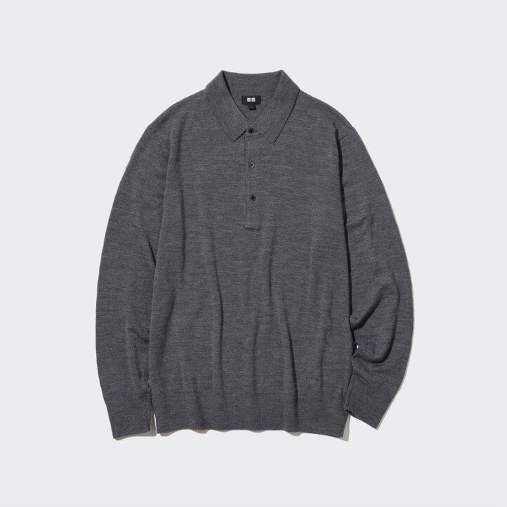 Polo Uniqlo 100pct Extra Fine Merino Knit Long Sleeved Homme Noir T1732405
