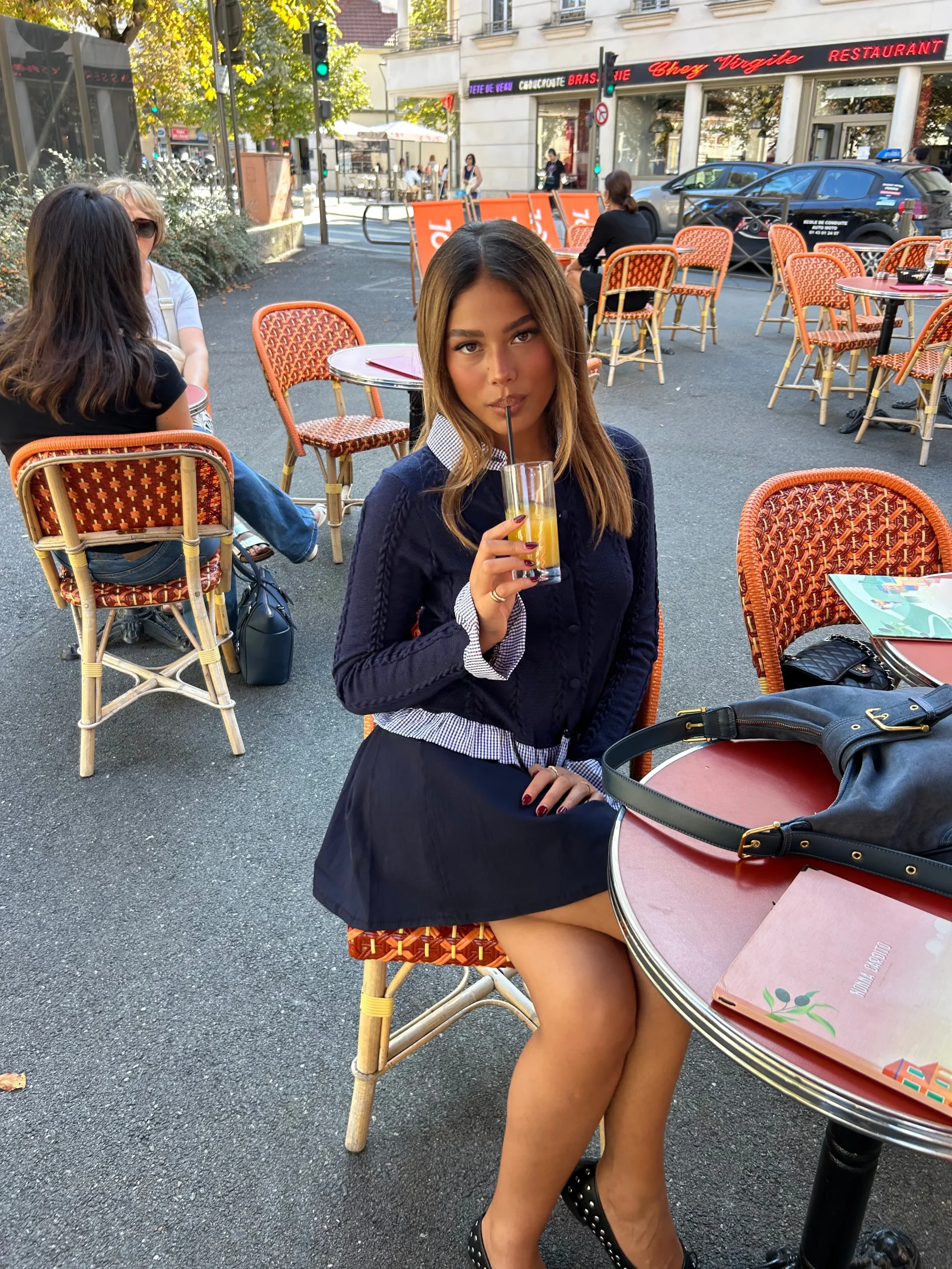Haut chic à manches longues avec un joli jeu de textures et des finitions contrastantes au col et aux poignets. Une pièce élégante qui combine allure sophistiquée et style preppy.