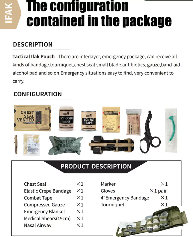 Trousse de secours tactique compacte avec accès ultra-rapide Compartiments segmentés pour une organisation optimale en situation d’urgence Inclus un garrot de haute qualité pour la gestion immédiate des blessures