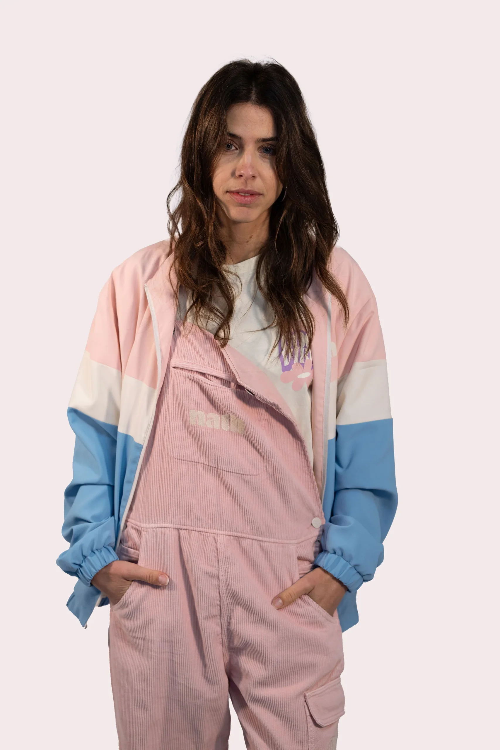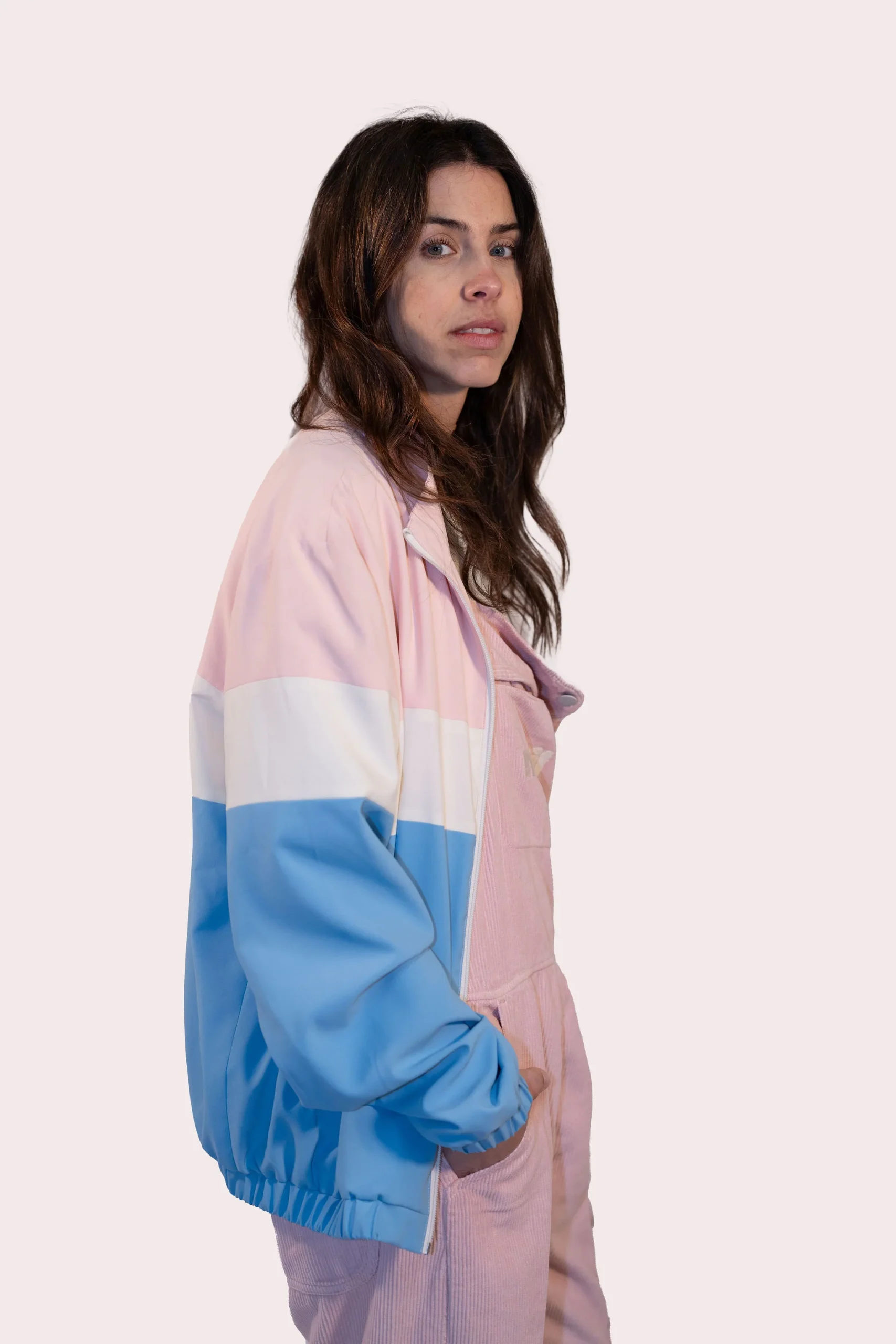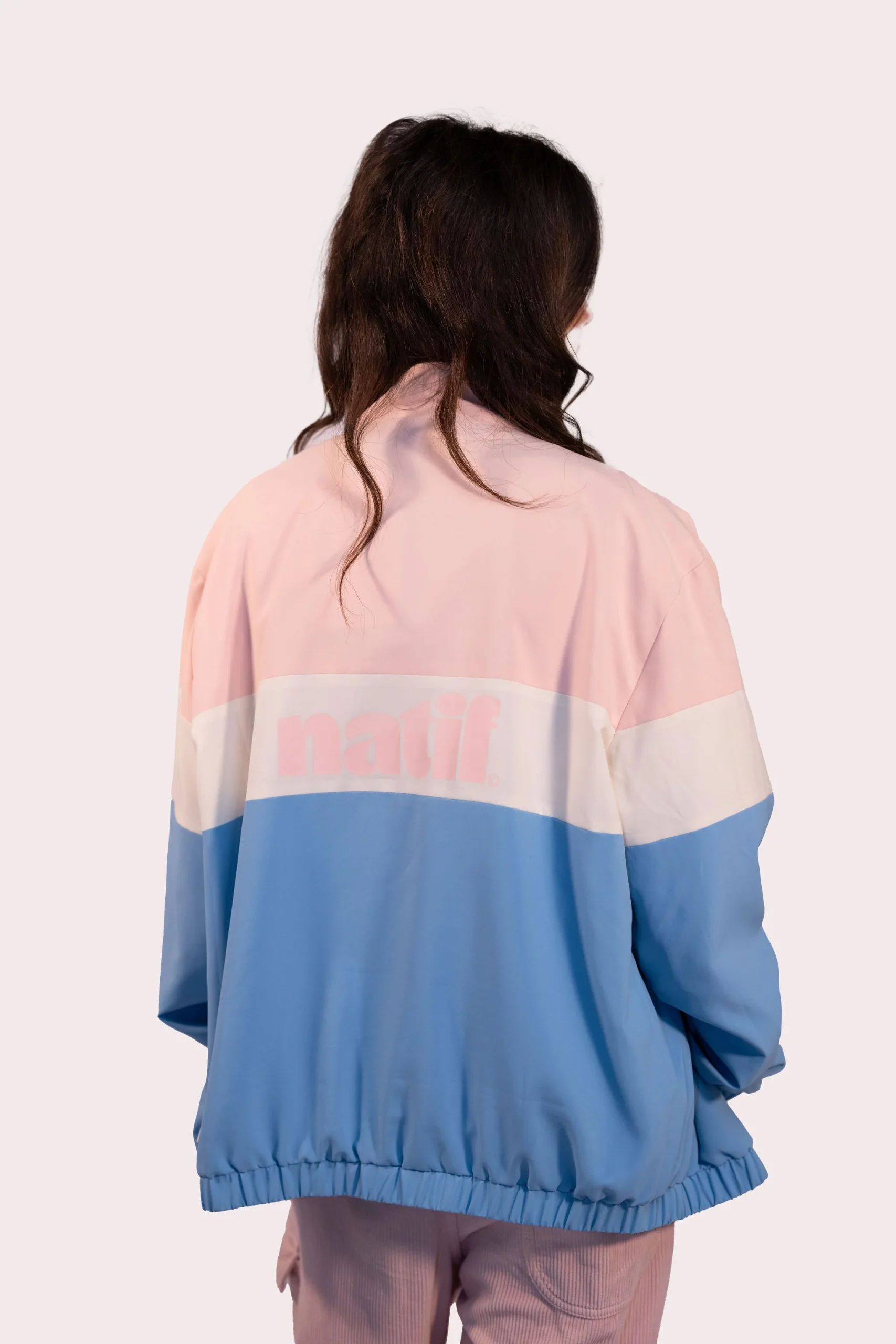 La vibe des années 90 avec cette toute nouvelle veste Natif ! Veste unisexe Couleur bleu et rose