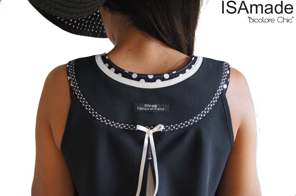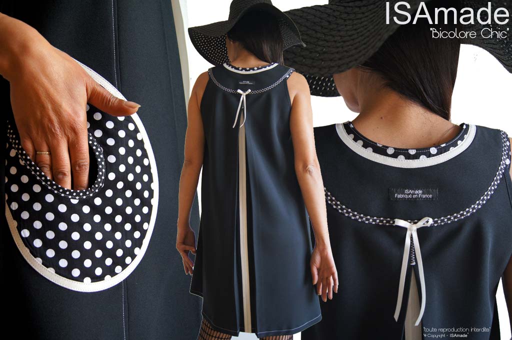 La robe Trapèze bicolore » made in France » se donne des allures Chics et Tendance ! Son style Classique est revisité par un look Graphique élégant : Noir et blanc cassé Écru ! La fantaisie est apportée par des détails subtils : un jeu de contraste de couleur Noir/ blance, une signature cousue graphique « Noir » à pois, un ajout de dentelle fine brodée et fleurie. **** Modèle Réservée pour Marie Noëlle ***** taille 36/38/ 40/42 CONVIENT DU 36 AU 42 ne pas dépasser un 95B Longueur robe 85cm Robe « Bicolore Chic » -Devant Corps : Tissu Polyester infroissable de très…