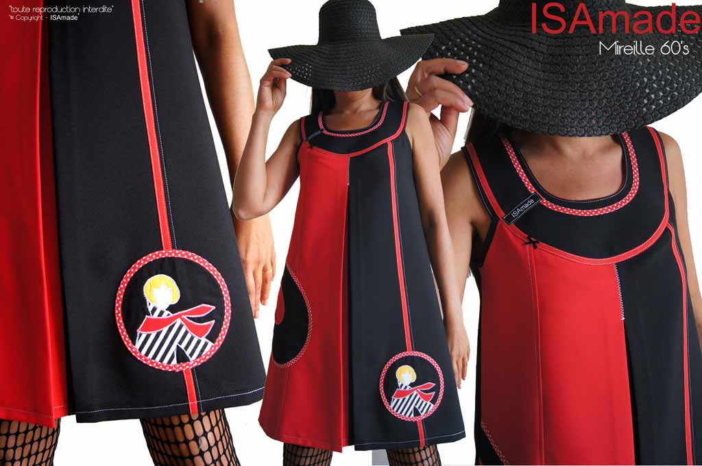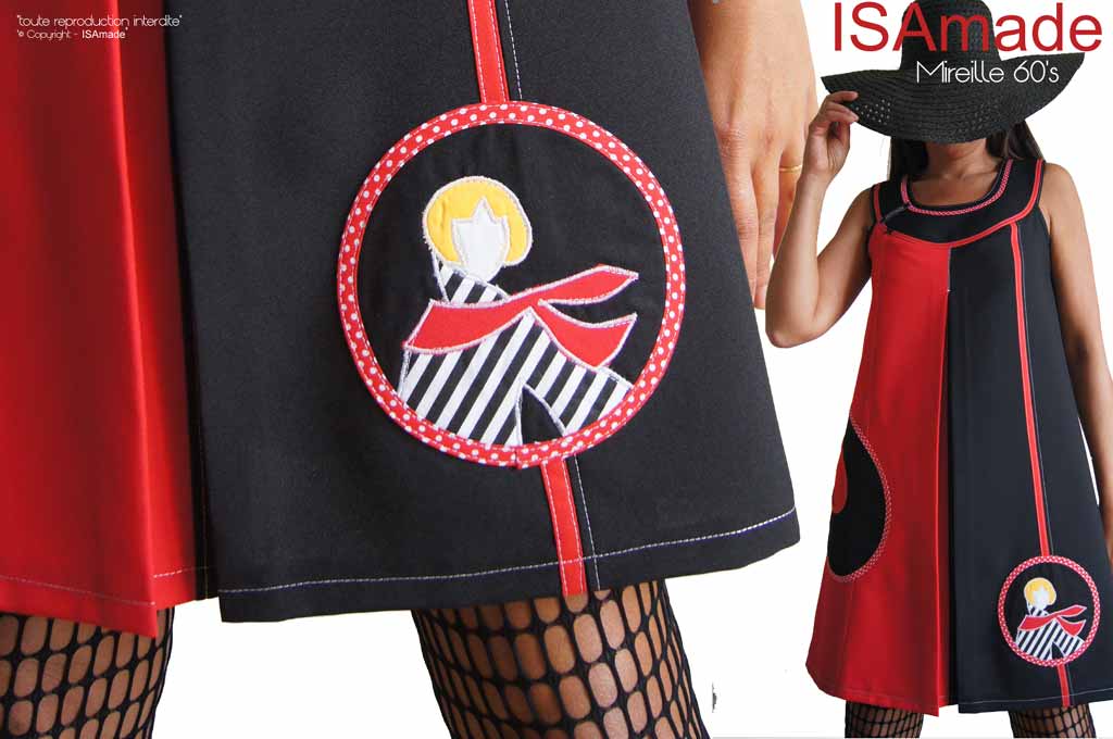 Robe Trapèze rouge noire 60’s créateur chic « Mireille 60’s » : une robe totalement inspirée des années 60.