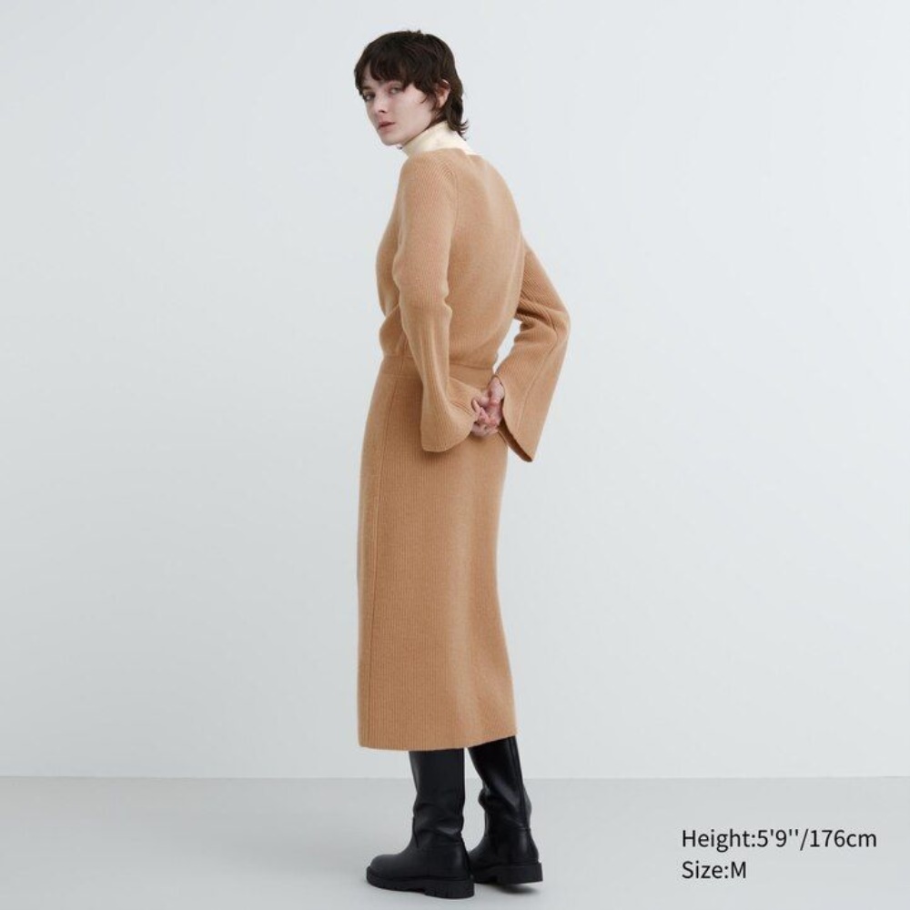 Robe Uniqlo Bateau Neck Long Sleeved Tricoté Femme Noir A4018527