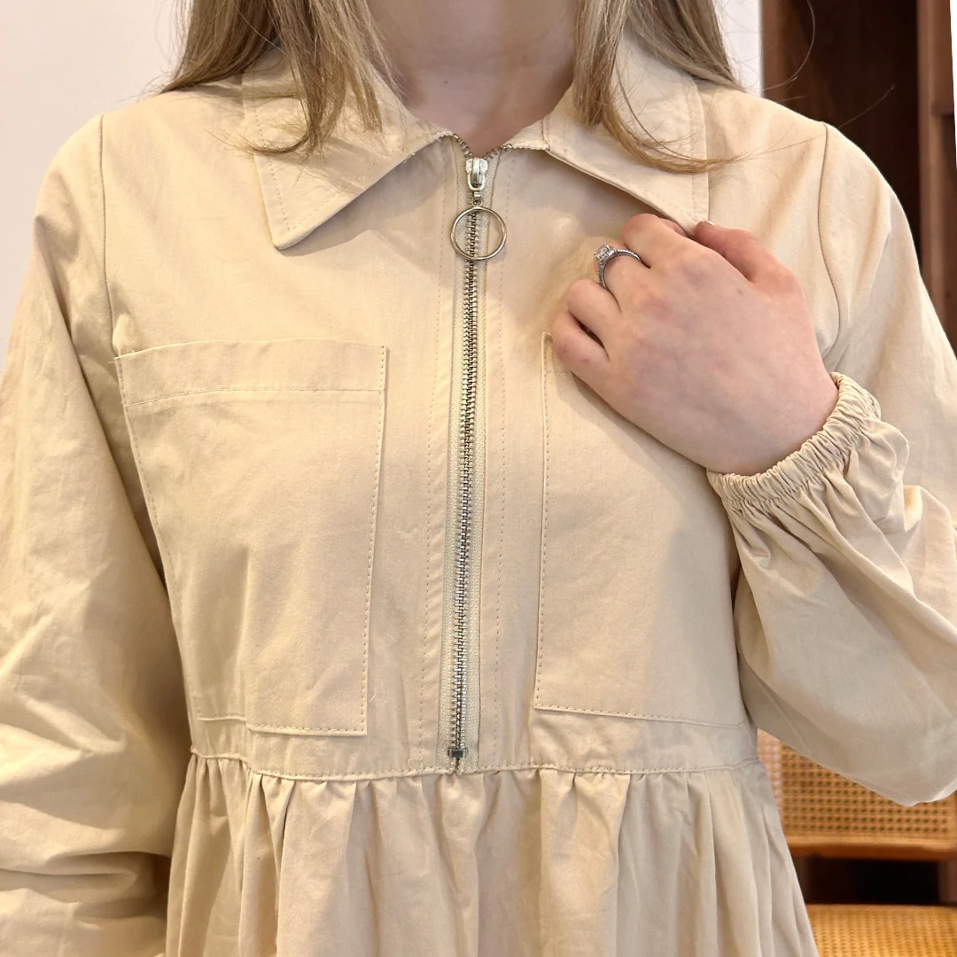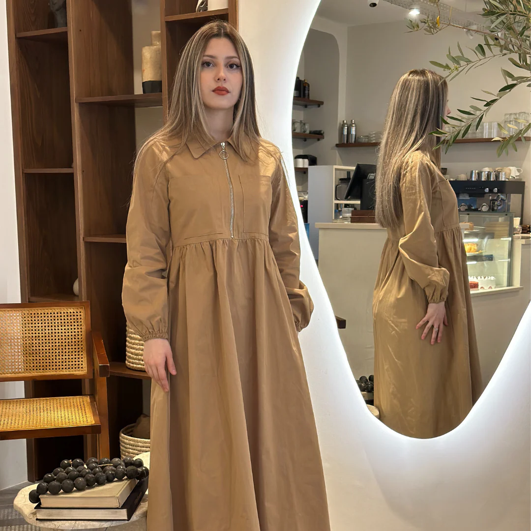 Que ce soit pour une journée de travail décontractée ou une escapade urbaine le week-end, cette robe zippée est le choix parfait pour celles qui veulent allier praticité et style décontracté chic.