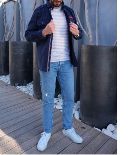 Disponible en marine pour un look classique ou en kaki pour une touche plus aventureuse, cette pièce versatile se porte ouverte sur un t-shirt pour un style casual ou boutonnée pour une allure plus habillée.
