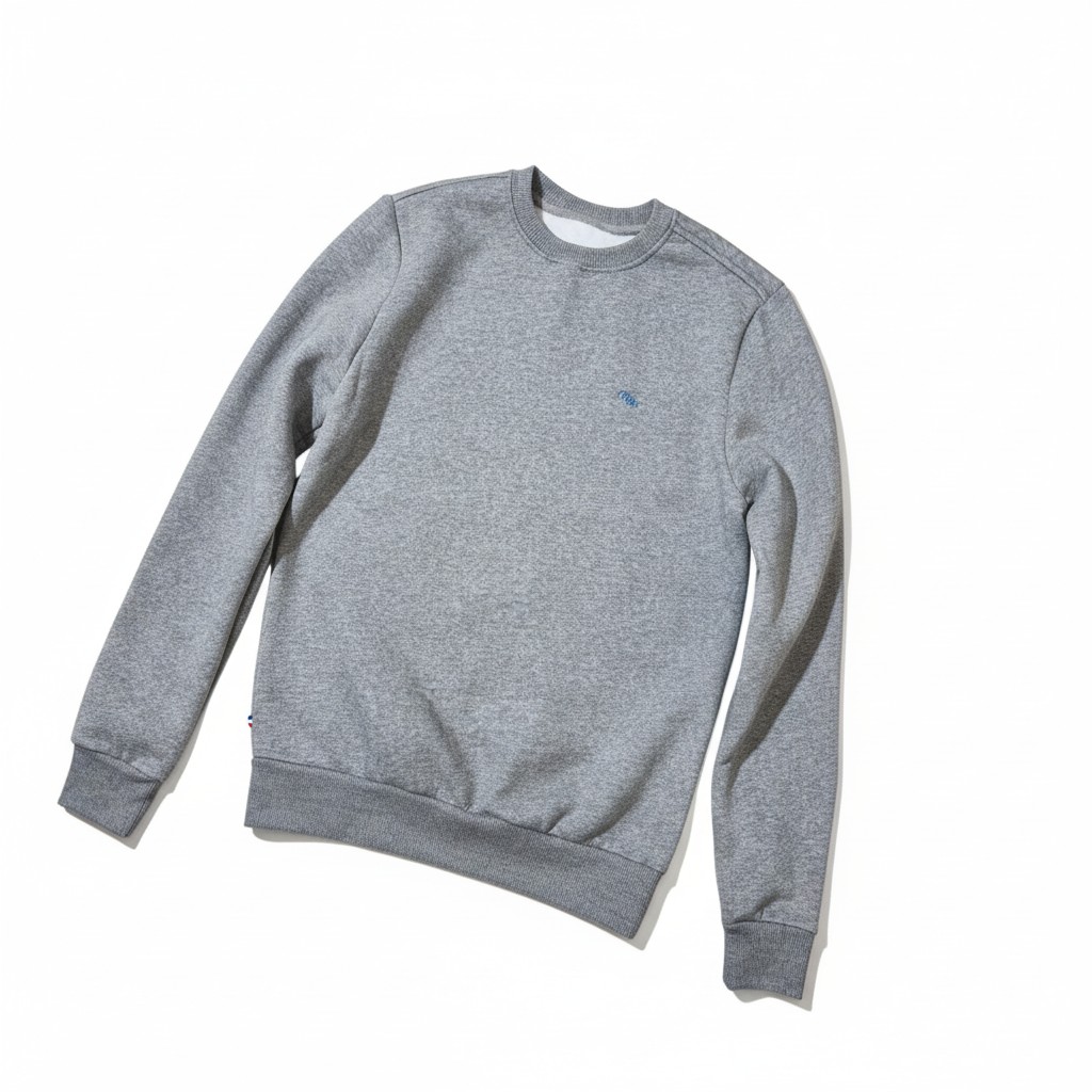 Sur la poitrine, le sweat VAL est signé d’une broderie exclusive “MM” – Marinière & Maillot, réalisée en fil bleu clair. Un détail discret et identitaire, symbole de qualité et d’authenticité.
