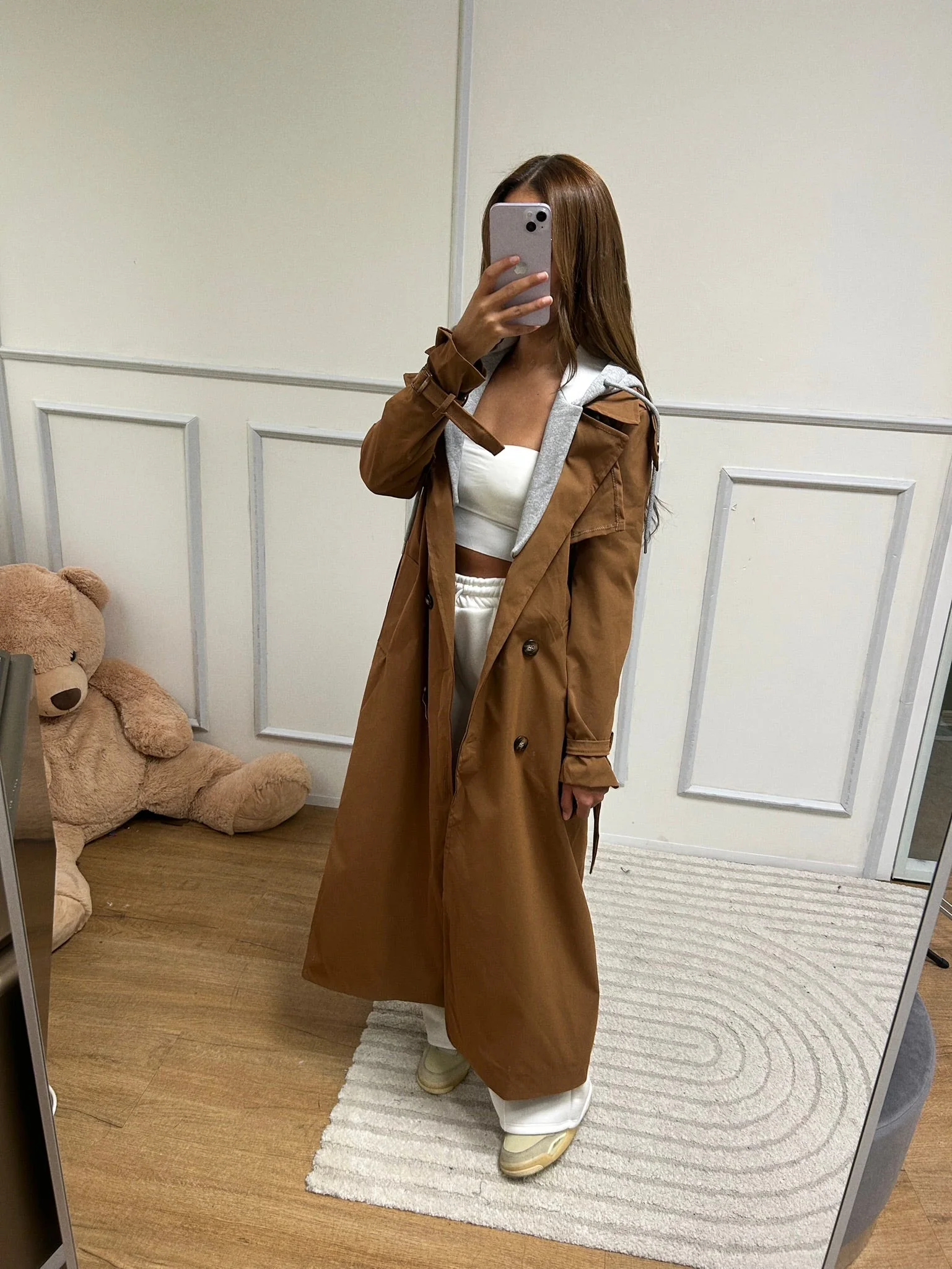 Trench imperméable à capuche taille unique peut convenir à un 34 jusqu’à un 42 Mannequin : mesure 1m60 composition 80%cotton. 20%polyster