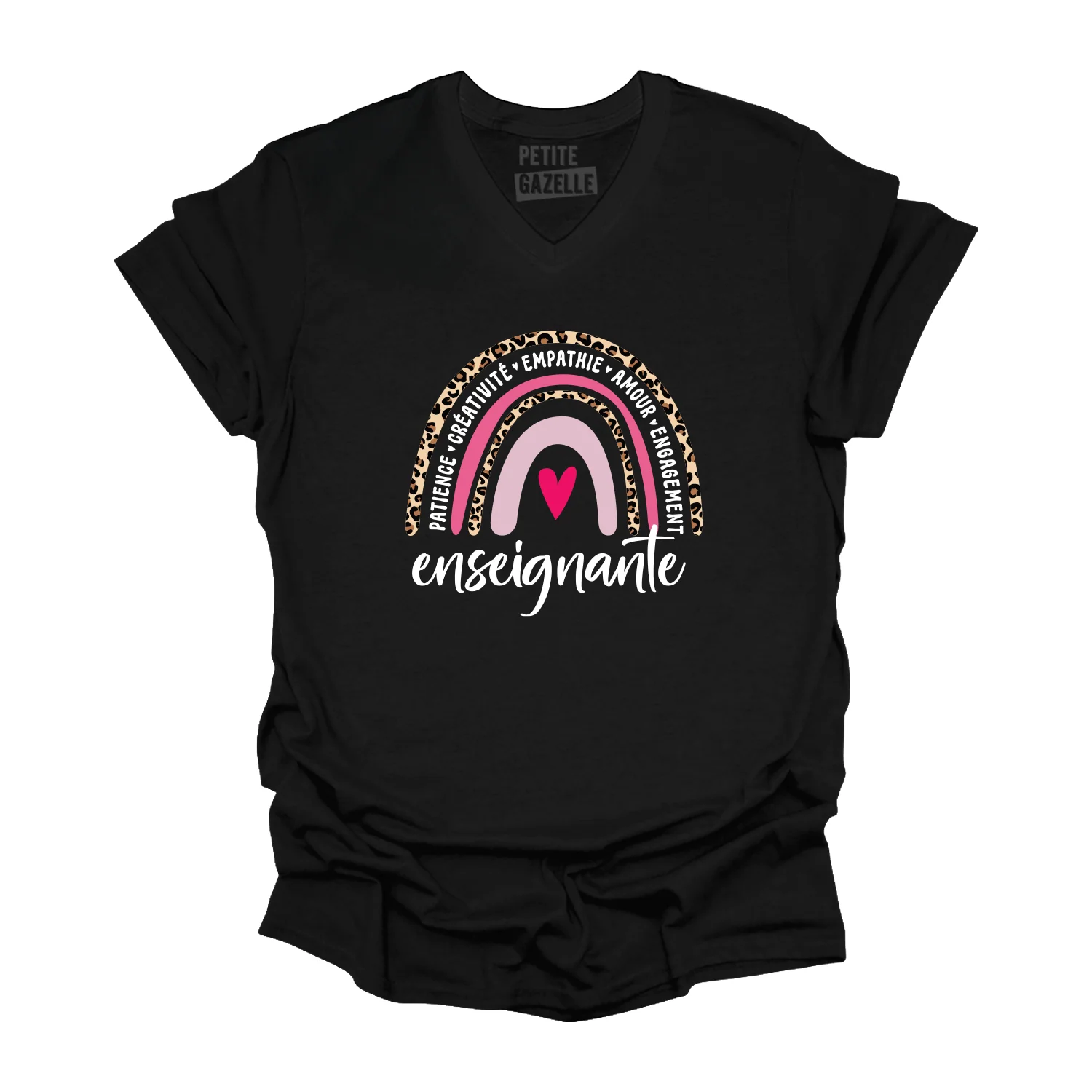 TSHIRT COL en V | Arc-en-ciel Enseignante