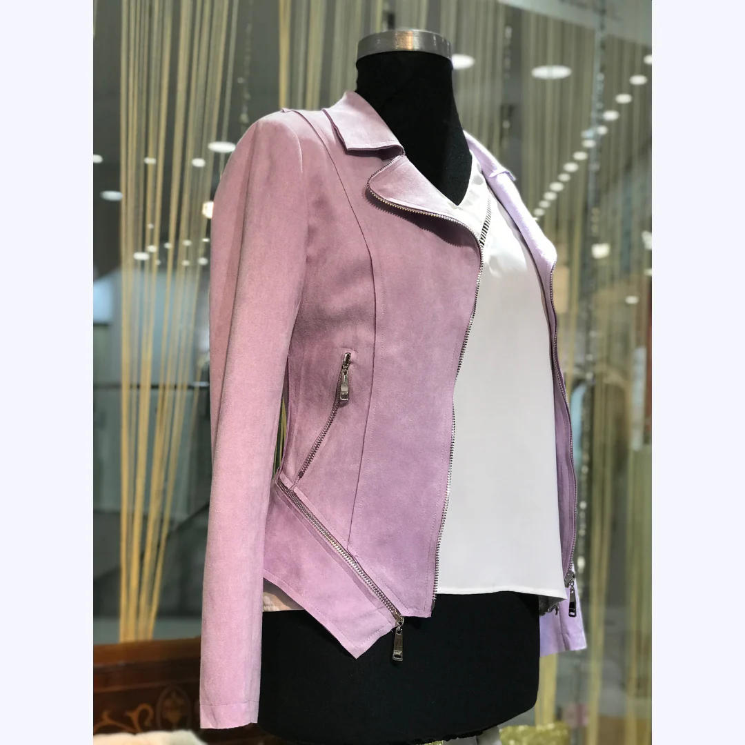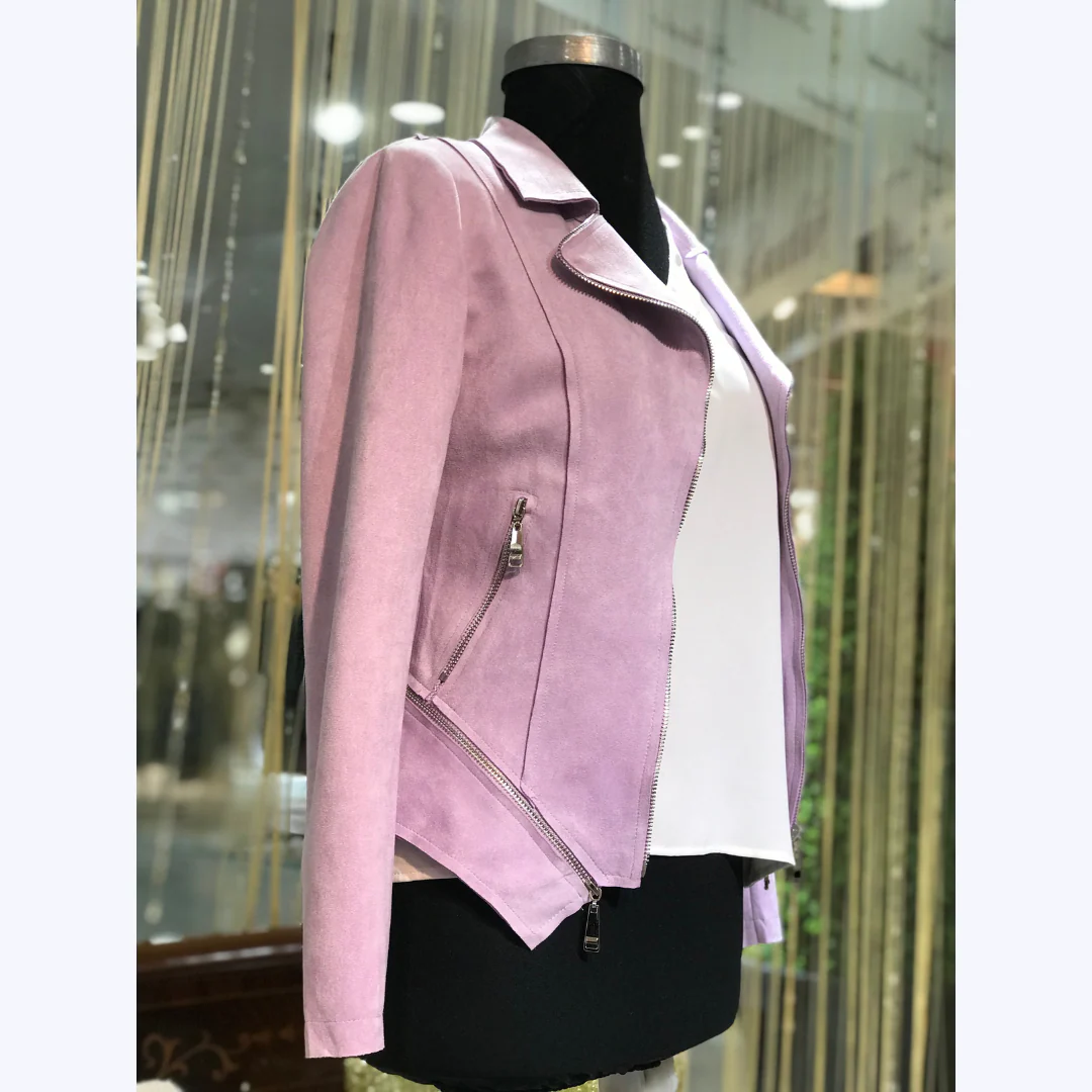 VESTE ASPECT DAIM Veste courte aspect daim avec col à revers et manches longues .