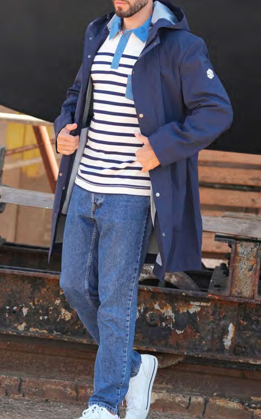 Veste imperméable HUBERT – Élégance fonctionnelle contre la pluie HUBERT, c’est le trench marin version moderne : sobre, fonctionnel, et toujours prêt à affronter les averses avec allure.