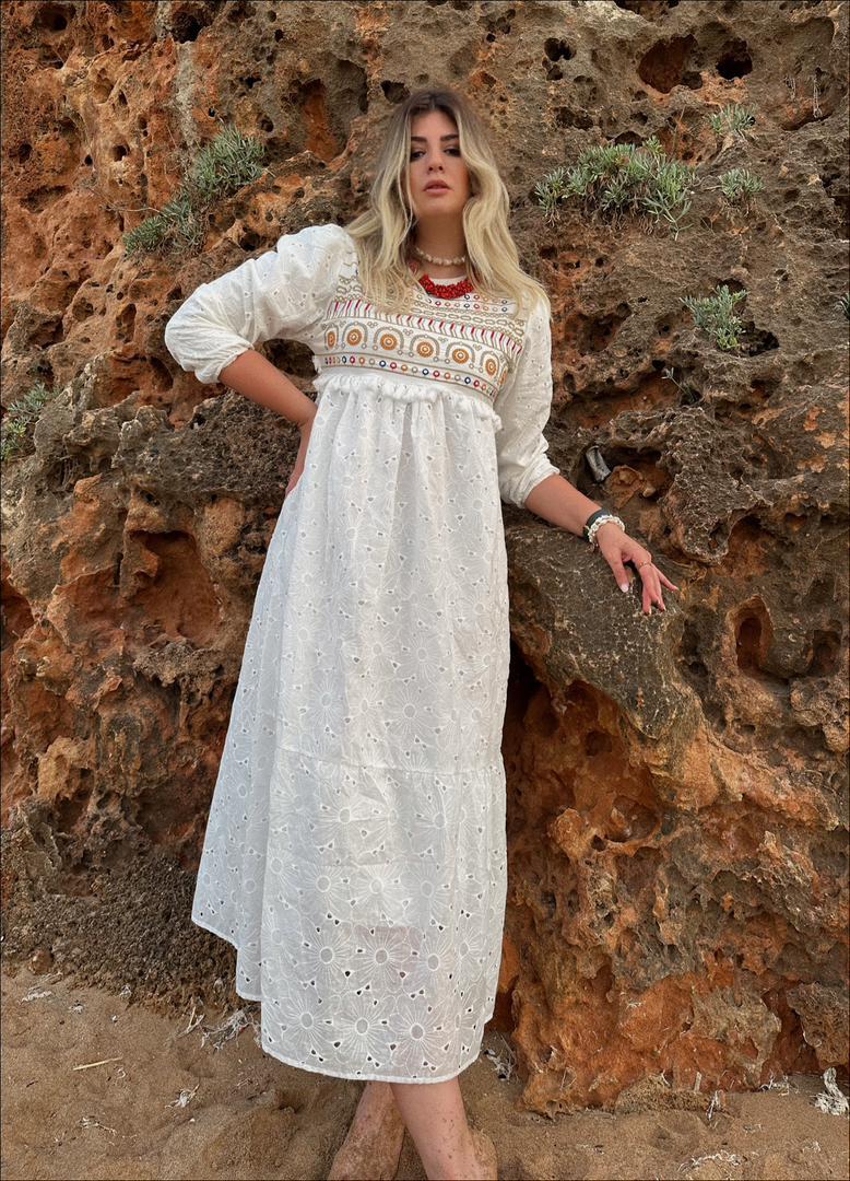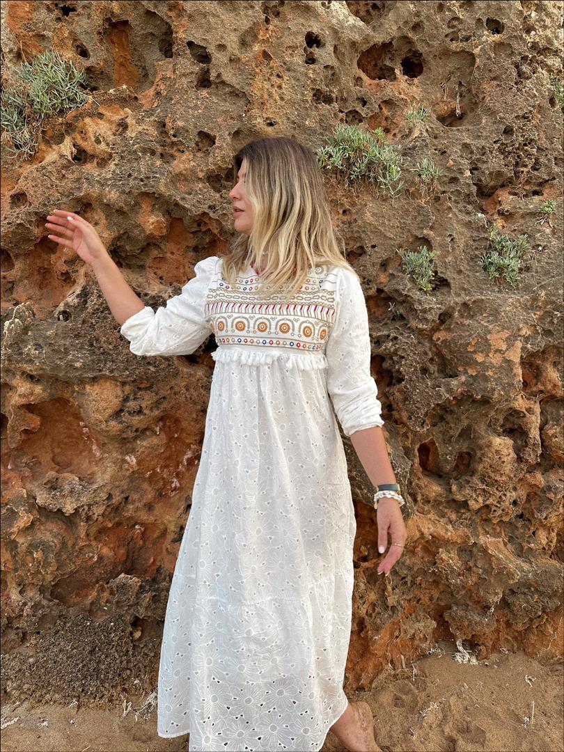 Plongez dans l’élégance bohème avec notre robe longue stylée zinnia , un chef-d’œuvre de qualité supérieure. Confectionnée avec soin, cette robe blanche incarne parfaitement l’esprit libre et sophistiqué de la femme moderne.